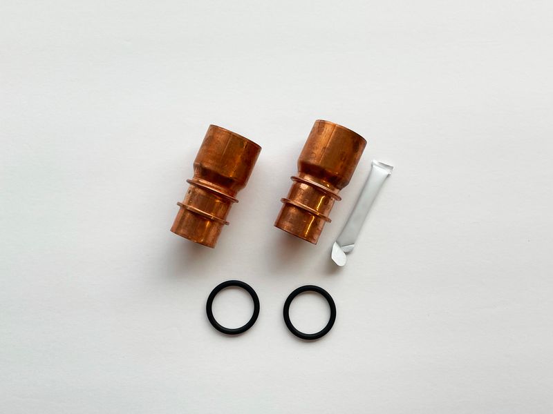 Part #: 7265287. These copper installation adaptors connect your water softener to 1-1/4” plumbing. Fits directly into the 1” bypass on Whirlpool, Kenmore, Morton, and Rheem water softeners and replaces the plastic installation adaptors that come with the unit. Purchase includes two copper adaptors, two O-Rings and silicone grease.